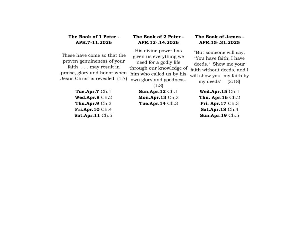 View or Download the Bible Reading Plan here: The Books of 1 & 2 Peter and James