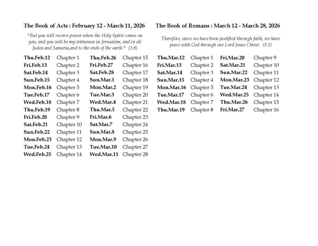 View or Download the Bible Reading Plan here: The Book of Acts and Romans
